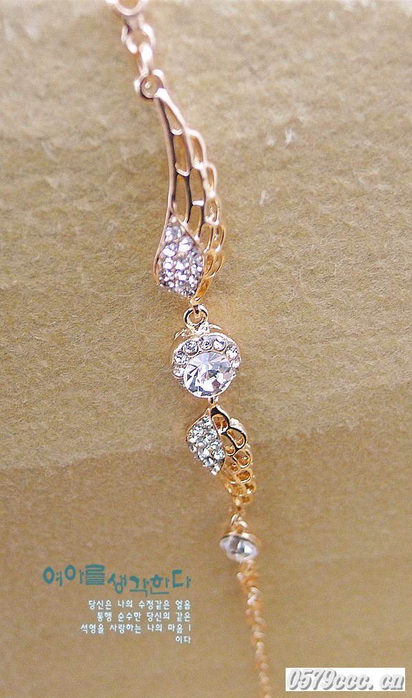 飾品批發(fā) 滿鉆翅膀桃心水晶手鏈 七夕情人節(jié)禮品項鏈 禮物