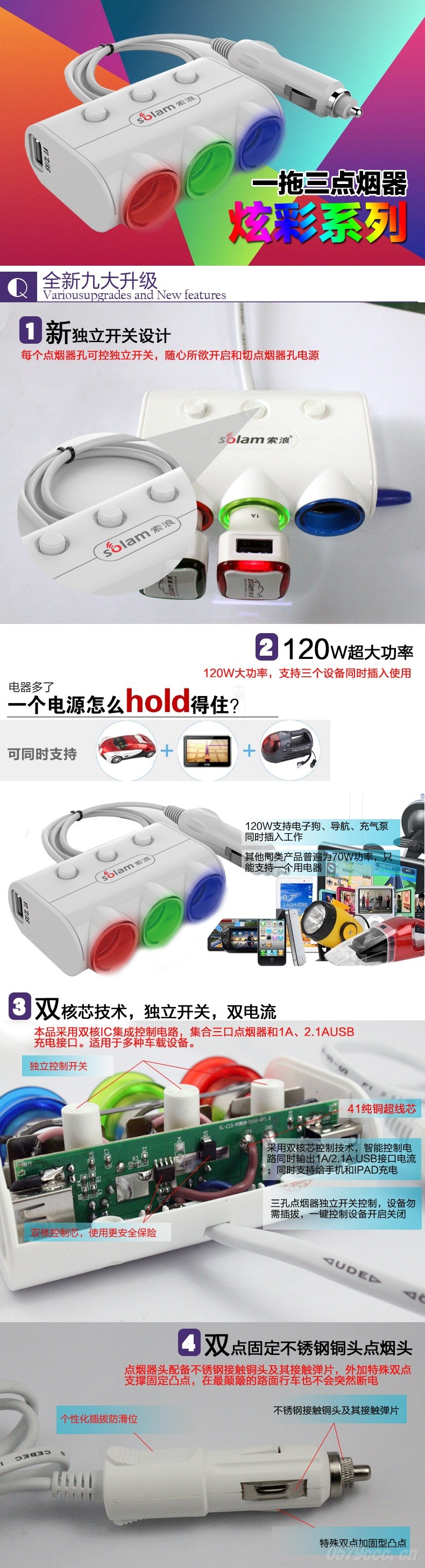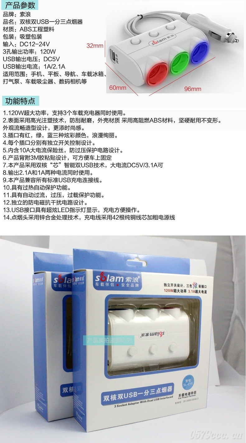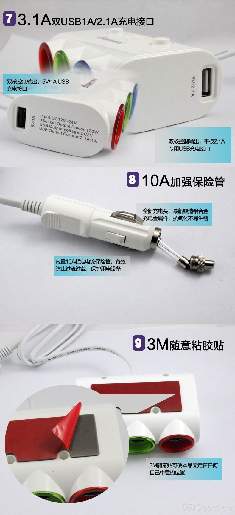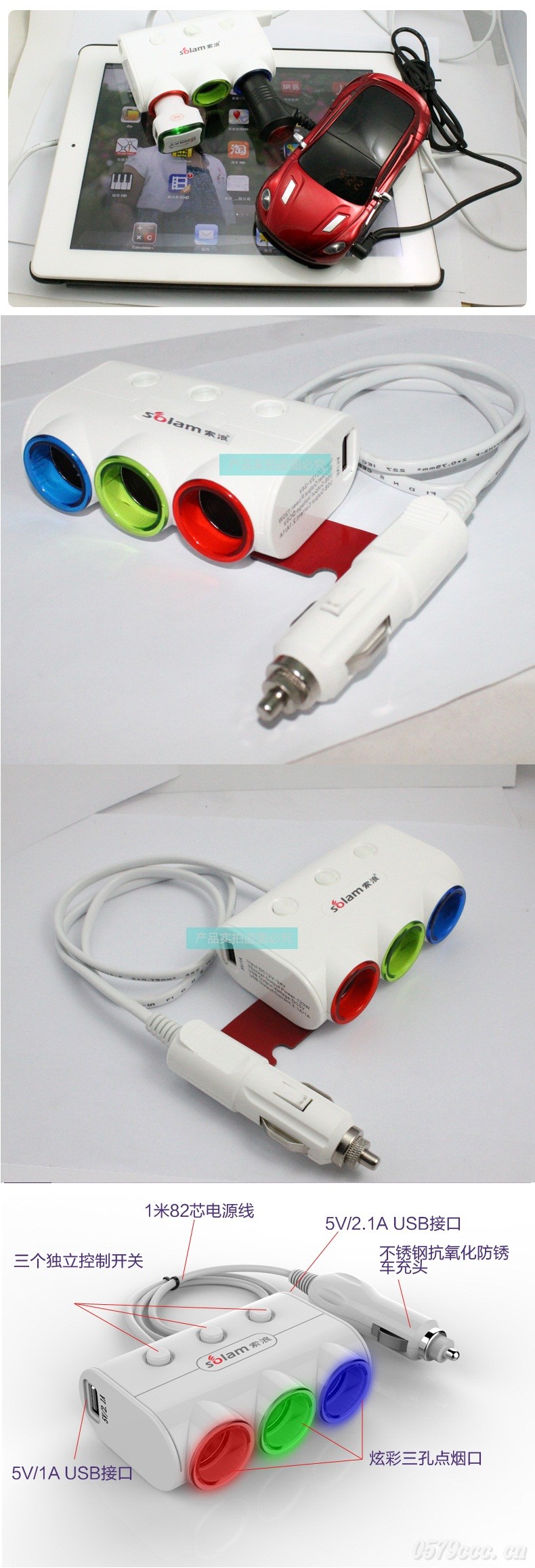 【產(chǎn)品名稱】車載充電器(一分三雙USB)