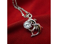 韓版 新爆款項(xiàng)鏈 雙海豚灣之戀鋯石項(xiàng)飾